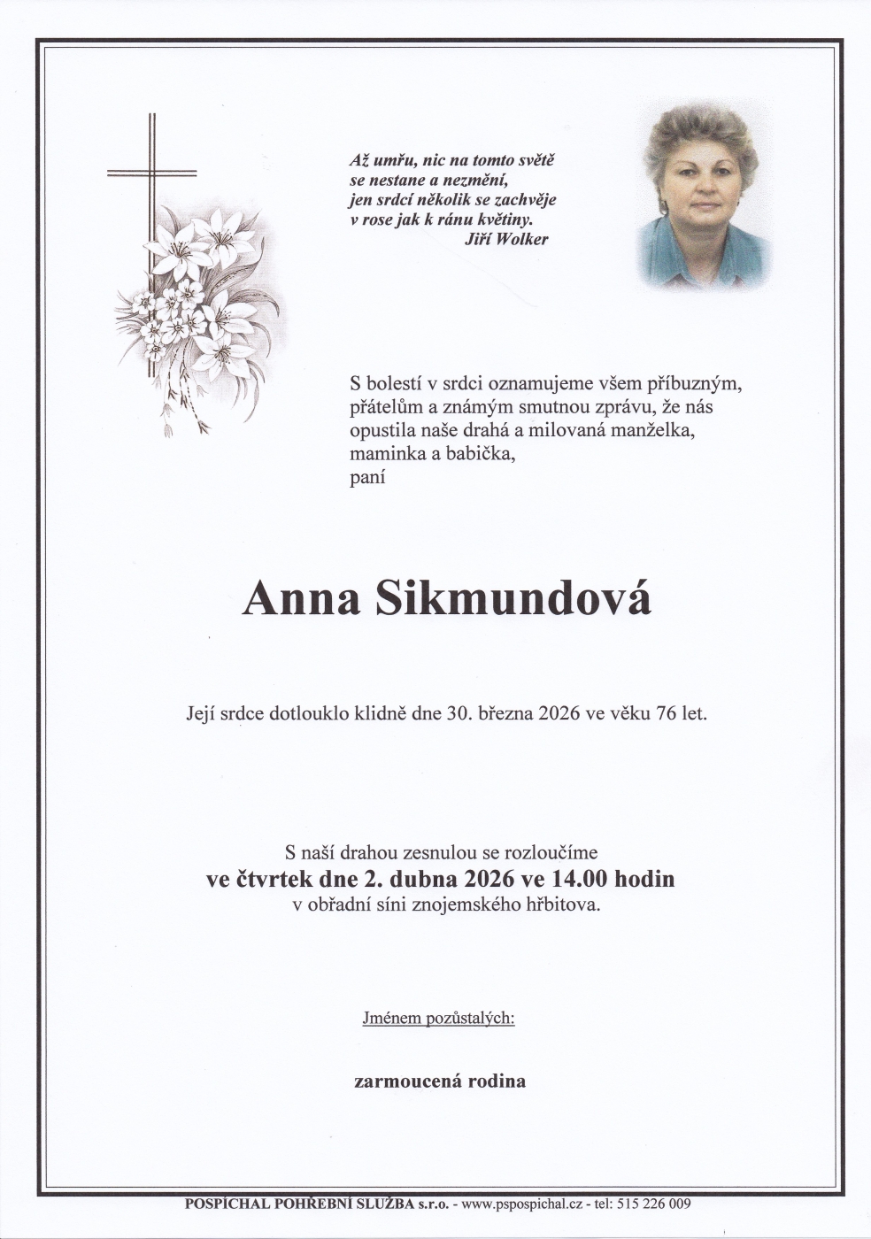 Napište kondolenci