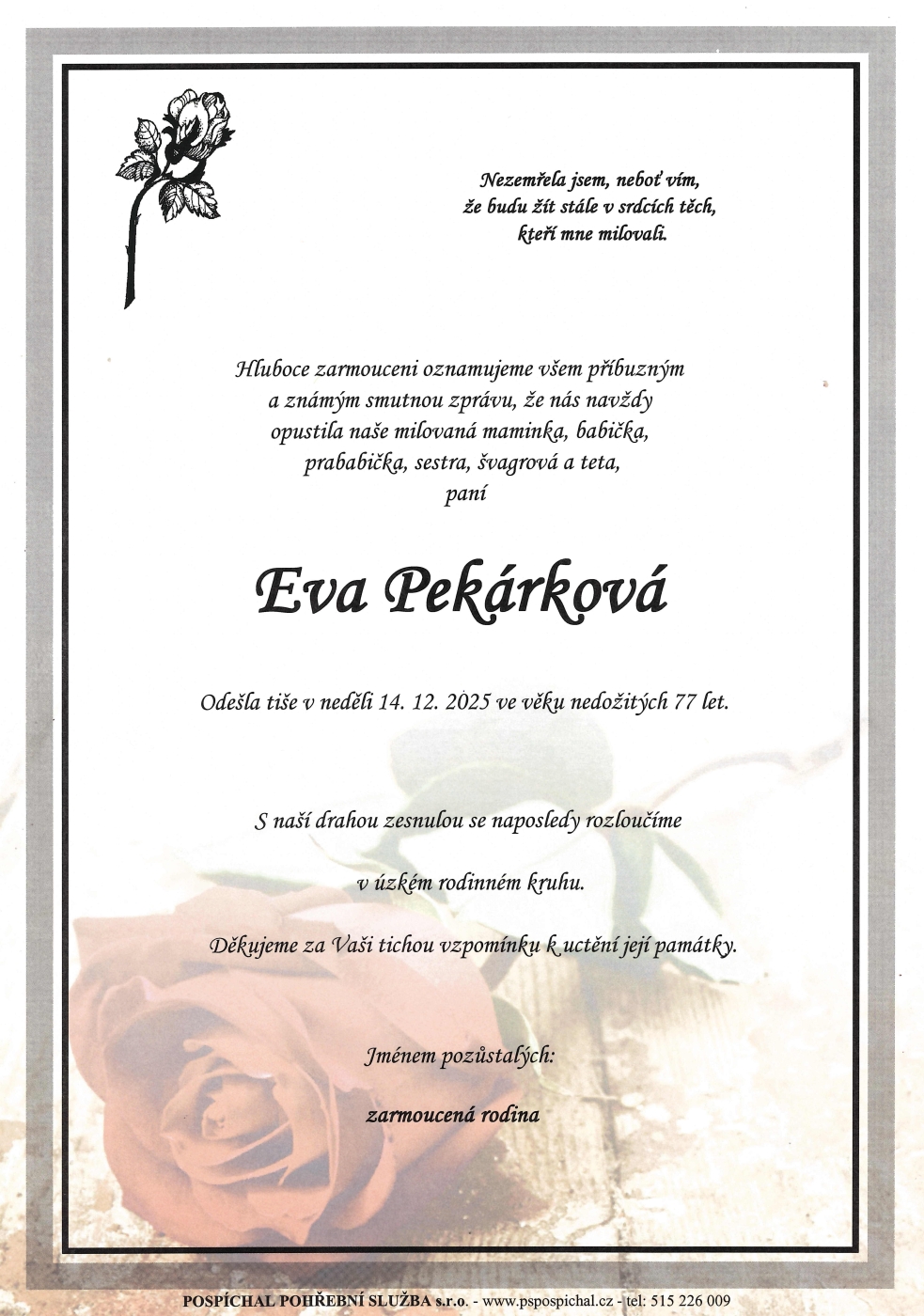 Přijměte prosím upřímnou soustrast, cítíme s vámi. Marie a František Krejčí.