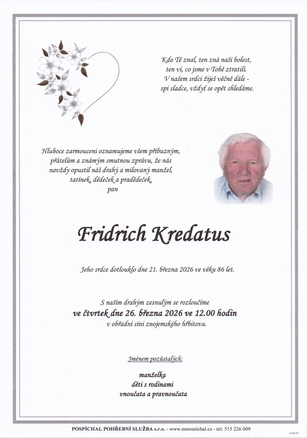 Upřímnou soustrast zarmoucené rodině.