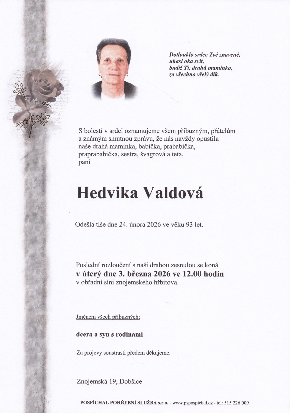 Upřímnou soustrast celé rodině
