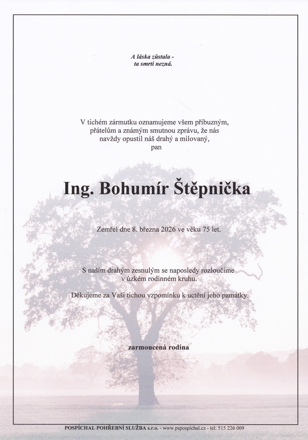 Přijměte naši upřímnou soustrast.