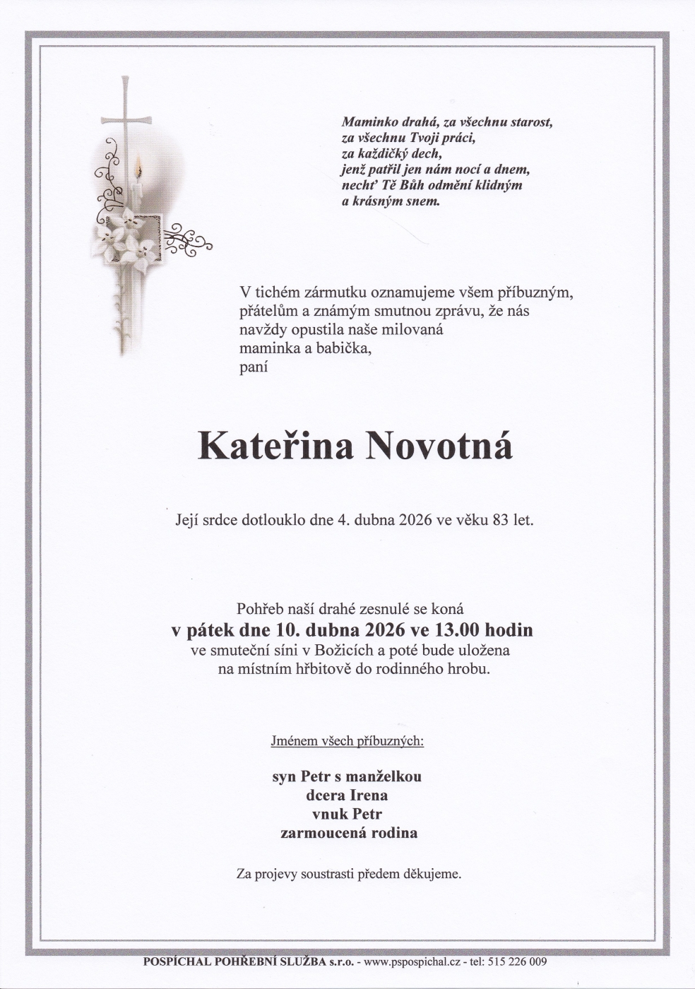 Přidat kondolenci