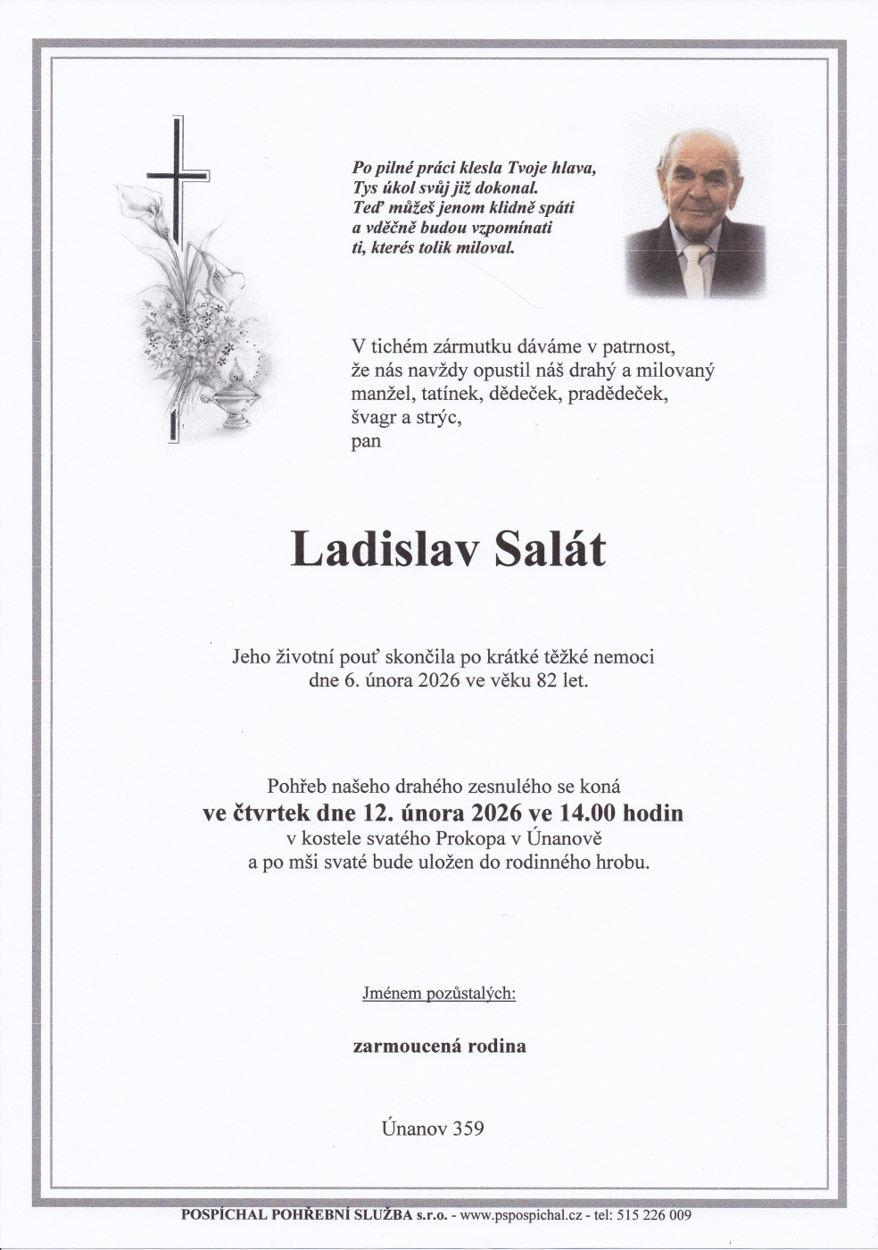 Děkujeme všem příbuzným, přátelům a známým, kteří přišli vyprovodit na poslední cestě pana Ladislava Saláta.