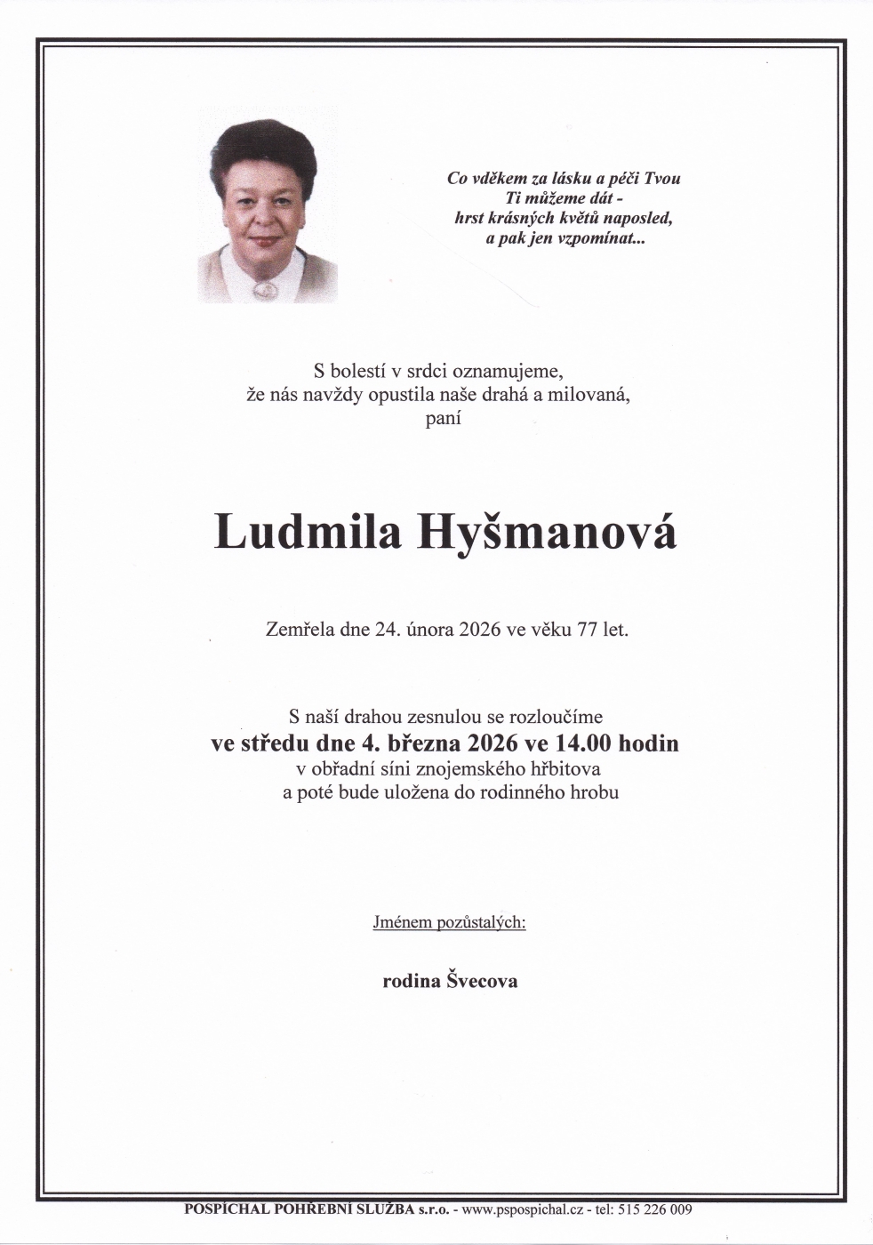 Upřímnou soustrast rodině.
