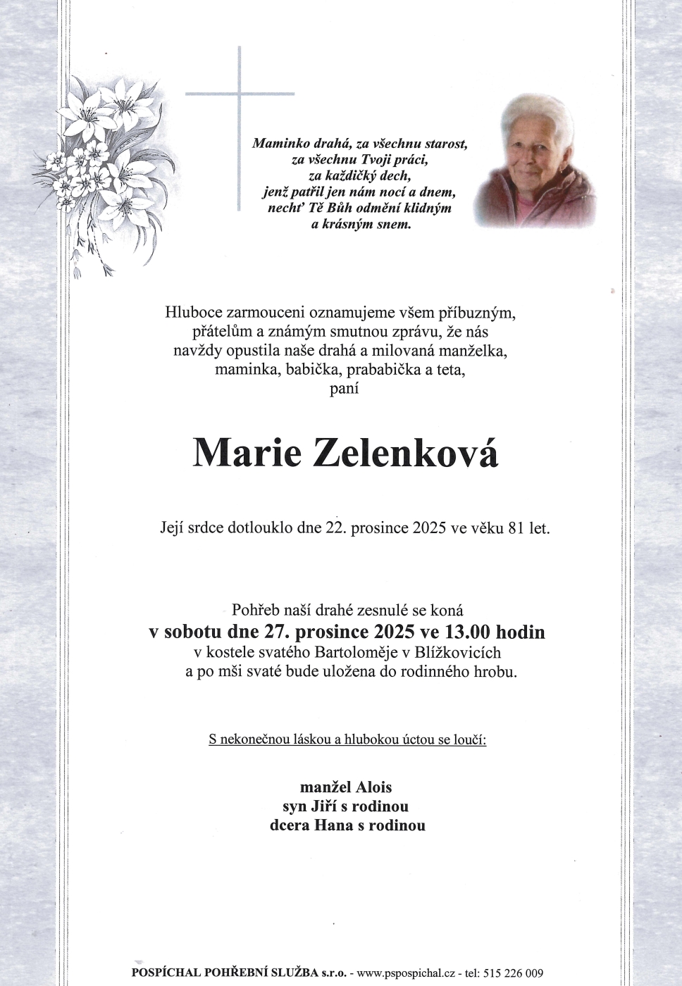 Upřímnou soustrast celé rodině