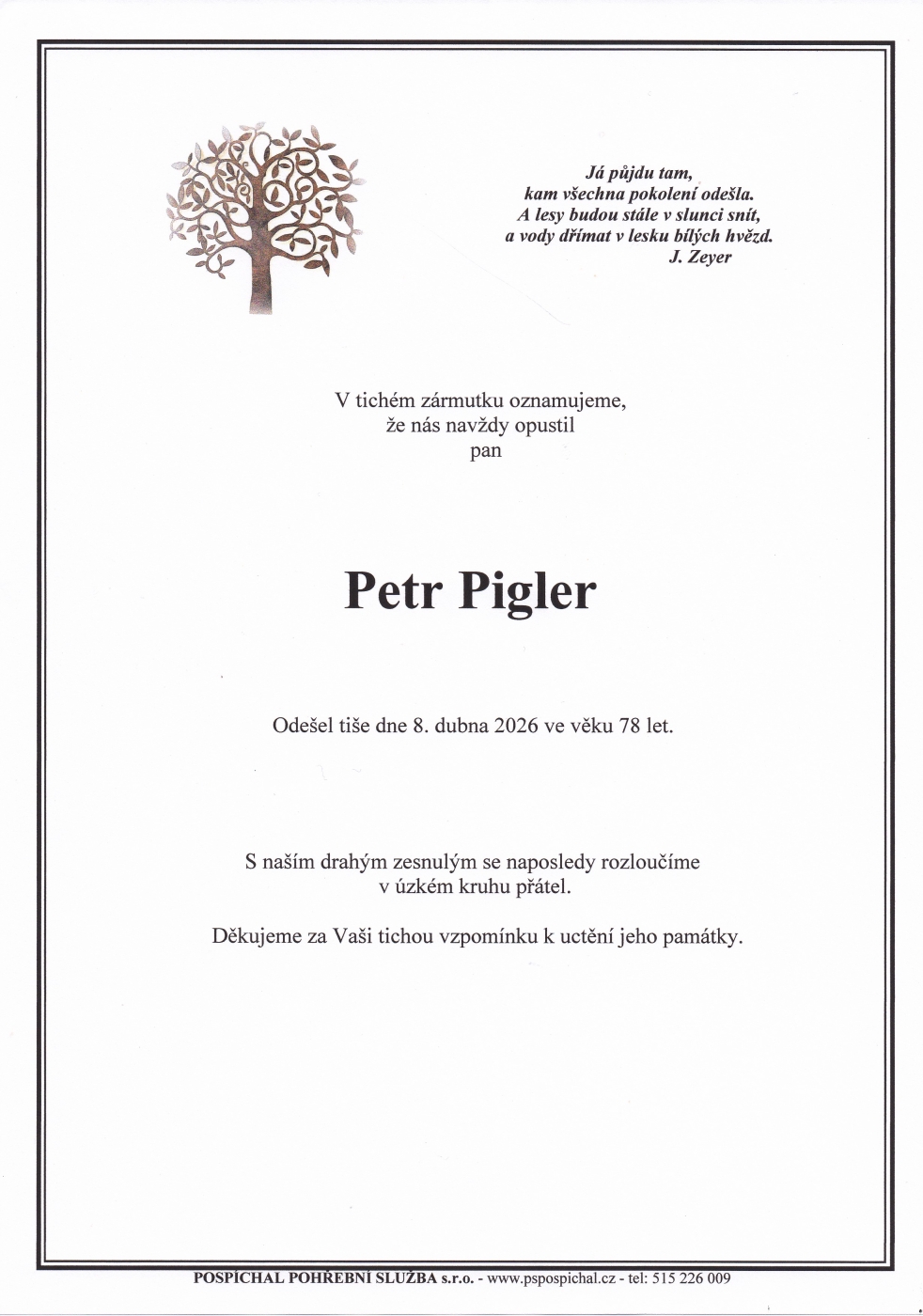 Napište kondolenci